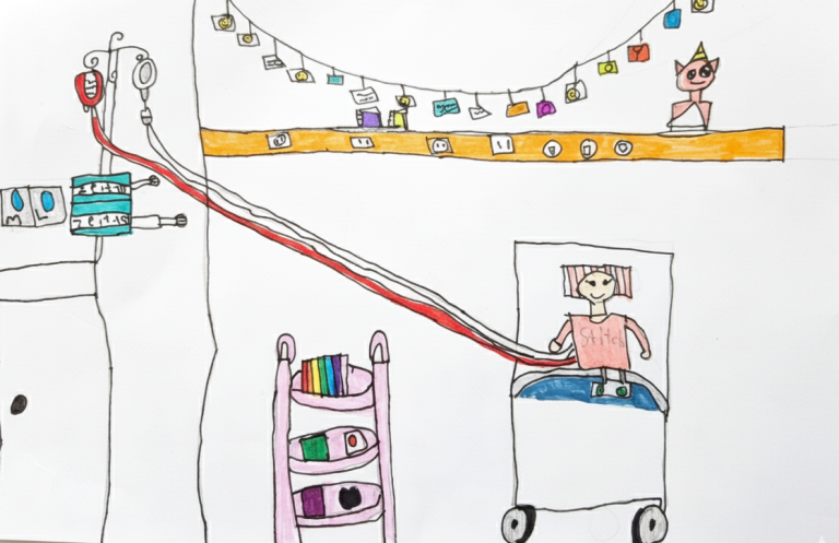 Entgegen der oft verbreiteten Sorge ist die Transplantation selbst kein chirurgischer Eingriff. Dein Kind muss nicht in den Operationssaal. Die Stammzellen des Spenders werden wie eine normale Bluttransfusion über den zentralen Venenkatheter (den „Hickman-Katheter“) in den Blutkreislauf geleitet.