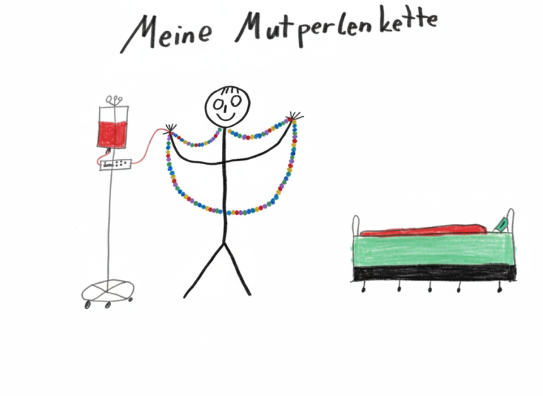 Entgegen der oft verbreiteten Sorge ist die Transplantation selbst kein chirurgischer Eingriff. Dein Kind muss nicht in den Operationssaal. Die Stammzellen des Spenders werden wie eine normale Bluttransfusion über den zentralen Venenkatheter (den „Hickman-Katheter“) in den Blutkreislauf geleitet.